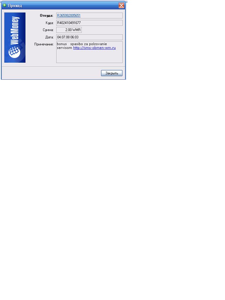 отправления с такого же WMID 0.01 WMR будут игнорироваться!