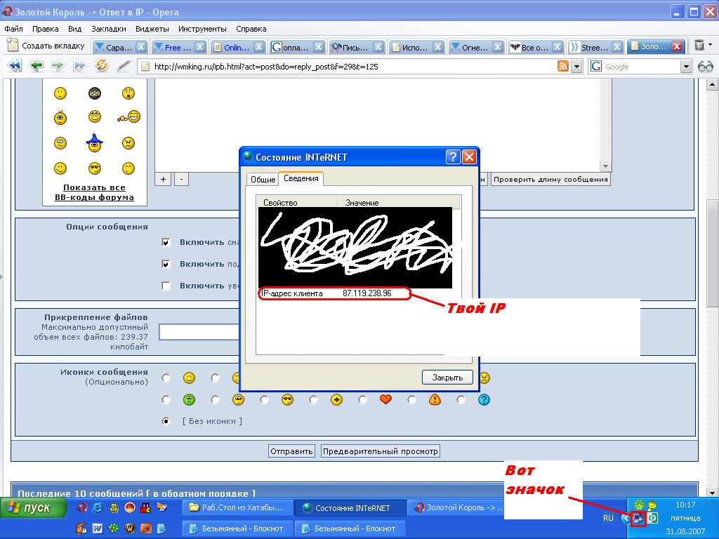 вот зайди сюда и там будет показан красными цыфрами твой айпи!!!!