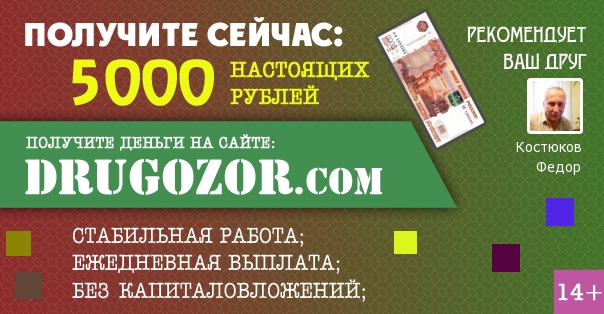 Проект ДРУГОЗОР с 19 июля по 14 августа 2015 года проводит акцию: "5000 рублей".