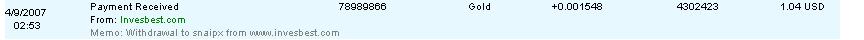 А сегодня заказал очередную выплату - 3$ уже на счете e-gold. Support очень оперативный. Увидел после заказа выплату такую надпись: