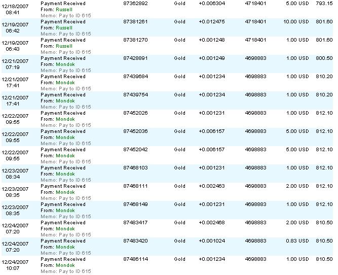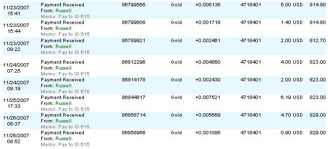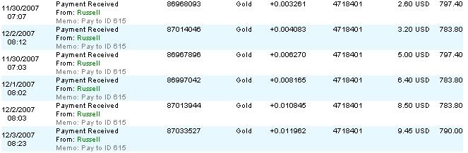 После апгрейда аккаунта (т. е. внесения депозита) на счет E-gold возвращается 17% вклада моментально. Т. е., допустим, я внес $5. Мне сразу же вернулись $0.85, плюс каждый день в течение недели на мой аккаунт зачисляется по 17% от вклада (т. е. $0.85). Эти выплаты я могу вывести в любой момент, когда захочу , а могу забыть про них на неделю и снять сразу всё ($0.85*7=$5.95). Внесенный вклад не возвращается Итого я заработаю. Чистая прибыль – 2.71% ежедневно. Следовательно проект стабилен!!!