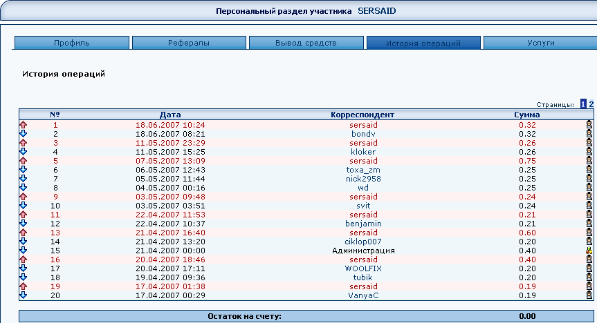 В проекте есть внутренний счет ???? Если да то скрин выплат выложите если не трудно !!!