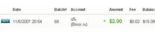 10/10/2007 11:32 ****** u******* (Binor.ru)+ $61.00