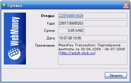 ВНИМАНИЕ! Это не очередной клон кинотрафа и т.п., и даже не конкурент аналогичным с оным партнёркам!!! Партнёрская программа Adult-Click.ru позиционирует себя как альтернатива заработка на баннерных показах, а также как один из основных источников дохода для вебмастеров, и является PPC системой (оплата за клик по объявлению) для сайтов развлекательной и adult тематики. Регистрация в партнёрской программе бесплатная и принять участие в ней может любой вебмастер, готовый размещать наши объявления на своём сайте. После регистрации в своём партнёрском кабинете вы найдете ява-код объявлений и инструкцию по настройке внешнего вида. Сами объявления представляют из себя короткие текстовые ссылки, а гибкая система настройки поможет вписать ссылку в любой дизайн, элемент меню сайта и т.п. Размещать наши объявления можно на любых сайтах, дорвеях, исключая ДП и ЗОО. Условия работы с партнёрами: - Оплата от 30$ до 50$ за 1000 уникальных посетителей. - 10% от дохода привлеченного вами вебмастера - Подробная статистика с обновлением раз в 5 минут - Оплачиваются все уникальные переходы, совершенные из России, Украины, Казахстана. - Выплаты раз в неделю по четвергам. Минимальной суммы для выплат нет. Adult-Click гарантирует: - Стабильные биды (0.03$ за переход) - Отсутствие нецензурных слов и выражений в тексте объявлений - Отсутствие вирусов и вредоносных программ на сайтах, куда будут направлены ваши посетители - Стабильность и своевременность выплат - Дружелюбный и компетентный саппорт. Среди рекламируемых в нашей системе сайтов МОГУТ встречаться: - Сайты "для взрослых" - Сайты развлекательной тематики (игры, музыка и т.п.) Тех. поддержка: ICQ 292487547 http://adult-click.ru/ |