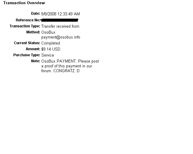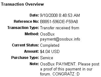 ![]() Osobux - стартовал не так давно, производяться быстрые выплаты Для стандарт членов: ваш клик 0.01$, клик реферала 0.005$, минималка 4$, оплата в течении 10 дней, доступно 10+ рекламных ссылок Для премиум членов: ваш клик 0.012$, клик реферала 0.008$, минималка 4$, оплата в течении 24 часов доступно 15+ рекламных ссылок. Относительно небольшая оплата за клики премиальных членов наталкивает на мысль, что проект не закроется быстро. У проекта симпатичный дизайн, есть раздел Payment Proof, есть форум, произведены выплаты, вот одна из них, на данный момент все выплаты очень быстрые, в течении дня. Есть чат, можно пообщаться с пользователями и админом в режиме Live, недавно появилось казино, можно выграть до 40$ ![]() Так же проект имеет баннер отслеживающий ваш баланс, вот мой ![]() Регистрация |