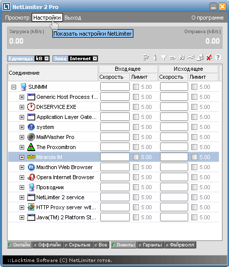 NetLimiter - Эта утилита поможет вам следить за входящим и исходящим траффиком, как в целом, так и по отдельным программам. Программа может устанавливать жесткие ограничения на расход траффика. Она мала по объему и нетребовательна к ресурсам. Скачать! |