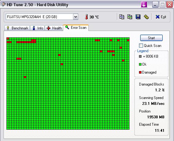 Скрин результатов проверки HDTune: В Health у половины пунктов статус не ок. Вот что сказал checkdisk: Тип файловой системы: NTFS. Метка тома: disk. ВНИМАНИЕ! Параметр F не указан. CHKDSK выполняется в режиме только чтения. Проверка файлов (этап 1 из 3)... Не удается прочесть сегмент записи о файле 80. Не удается прочесть сегмент записи о файле 4132. Не удается прочесть сегмент записи о файле 6080. Не удается прочесть сегмент записи о файле 6436. Не удается прочесть сегмент записи о файле 6628. Не удается прочесть сегмент записи о файле 6756. Не удается прочесть сегмент записи о файле 6948. Не удается прочесть сегмент записи о файле 7140. Не удается прочесть сегмент записи о файле 7332. Не удается прочесть сегмент записи о файле 7588. Не удается прочесть сегмент записи о файле 7716. Не удается прочесть сегмент записи о файле 7780. Не удается прочесть сегмент записи о файле 7844. Не удается прочесть сегмент записи о файле 7908. Не удается прочесть сегмент записи о файле 7972. Не удается прочесть сегмент записи о файле 8036. Не удается прочесть сегмент записи о файле 14124. Удаление поврежденного сегмента 14636 записи о файле. Не удается прочесть сегмент записи о файле 15718. Не удается прочесть сегмент записи о файле 17900. Не удается прочесть сегмент записи о файле 18796. Не удается прочесть сегмент записи о файле 19052. Не удается прочесть сегмент записи о файле 19180. Не удается прочесть сегмент записи о файле 19372. Не удается прочесть сегмент записи о файле 19884. Не удается прочесть сегмент записи о файле 20076. Не удается прочесть сегмент записи о файле 20140. Не удается прочесть сегмент записи о файле 20176. Проверка файлов завершена. Обнаружены ошибки. Продолжение работы в режиме только чтения невозможно. Для продолжения нажмите любую клавишу . . . Я так понял на харде битые сектора или что-то в этом роде. Можно как-то пользоваться жестким диском, не задействуя проблемные области (сократив размер до 2-3 гигов, больше не надо), или еще как-то, или ему пора на помойку? |