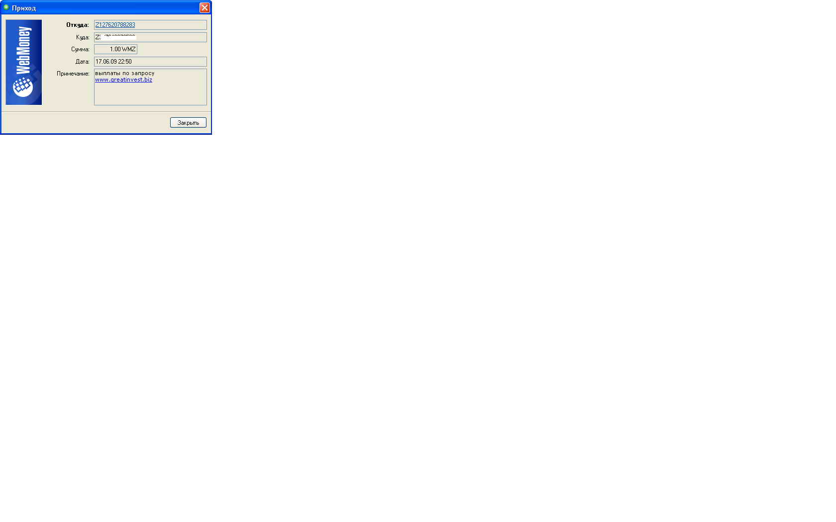 ![]() Программа Great Invest Group официальный «старт» 25 мая 2009. Коротко о себе говорят: Цитата Выгодный заработок начинается с 25 мая 2009! Форекс - это всегда риск! Поэтому последние 2 года торговли на форексе мы были озадачены созданием советника, который бы приносил постоянную высокую прибыль с меньшим риском. Спустя 2 года, благодаря использованию огромного количества фильтров в советнике мы добились желаемого результата!!! Теперь, когда мы уверены в своих силах на валютном рынке, мы решили привлечь еще более крупные капиталы, поэтому и был создан этот сайт! Вы наверняка занимаетесь или хотите заняться инвестированием в сети с целью получения прибыли, иначе бы вы не попали на наш сайт! Мы предлагаем Вам вполне реальную прибыль от 1% до 7% ежедневно. Благодаря тому, что минимальный вклад в наш проект составляет всего $10, принять участие в нем могут все желающие! Мы будем рады видеть каждого в рядах наших инвесторов! Планы: Цитата 1. 7% в день -> Проект со стабильным доходом в 7 процентов! Создан специально для серьезных людей (Выводы через 15 дней) сумма-2500.00$ - Без ограничения. 2. 1% - 3% в день -> Данный вклад рассчитан на небольшие вложения и посему начисляемые проценты будут меньше. (Выводы через 15 дней) сумма-10.00$ - Без ограничения. 3. 2% - 5% в день -> Более серъезная программа вклада, предусматривающая солидные вложения и соответственно выгодную прибыль. (Выводы через 15 дней) сумма-100.00$ - Без ограничения Работают с PerfectMoney, LibertyReserve, Yandex, WebMoney. ЕСТЬ БОНУСЫ!! Цитата Бонусы проекта! 1.Всем пополнившим свой депозит до 25-го мая мы дарим 10$! 2.При пополнении Вашего депозита на сумму от $10 до $99 в любой платежной системе, то мы начислим бонус в размере 10% на балансовый счет. 3.При пополнении Вашего депозита на сумму от $100 и более в любой платежной системе, то мы начислим бонус в размере 20% на балансовый счет. 4.Пять уровней рефералов! 1-10%, 2-5%, 3-1%, 4-1%, 5-1% Вклад 50WMZ от 28/05/09. РЕГИСТРАЦИЯ -> Great Invest Group-greatinvest ![]() |