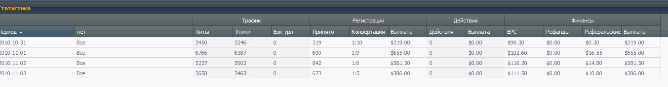 1. Не финансовые Уникальные переходы % рост / падение Регистрации % рост / падение Действия % рост / падение 2. Относительные Earnings Per 1000 Clicks % рост / падение 3. Заработанные средства Собственные Регистрации Действия Реферальские Регистрации Действия Другие начисления Итого заработано 4. Списанные средства Собственные Регистрации Действия Реферальские Регистрации Действия Другие списания Итого рефандов Выплачено Доступно к выводу Начисления отображаются за каждый месяц и суммарно за год. |