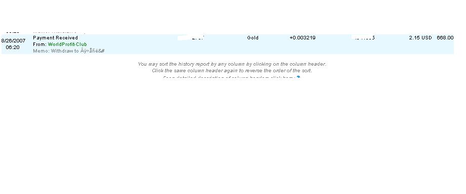 Пришло письмо от администрации Уважаемые инвесторы! В настоящее время, существует проблема с платежной системой E-gold. Вот такое сообщение мы получаем при попытке совершить выплаты - "Error(s) detected: The system was unable to perform your request at this time, please try again in a few minutes. Payment processing cancelled." Как только платежная система будет доступна, все выплаты будут тут же сделаны. Хотя это и не наша вина, тем не менее, мы приносим Вам самые искренние извинения за причиненные неудобства. С Уважением, администрация worldprofit-club.com |