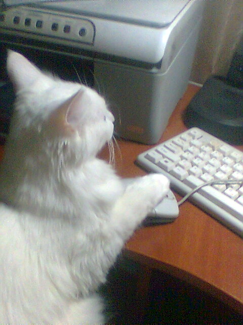 У меня белая ангорская вреднющая кошка, только фотки нет, жаль