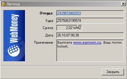 - Бонус за регистрацию $0.05 + 100 кредитов - Платные рассылки стоимостью от $0.002. - Платные клики стоимостью от $0.002. - Доступны 4 денежные валюты для заработков: доллары, рубли, гривны и евро! - СЛУЧАЙНЫЕ ВЫПЛАТЫ для всех пользователей. - КОНКУРСЫ рефералов, рекламодателей, активных пользователей. - Серфинг сайтов. - Оплачиваются так же письма с новостями нашего сайта! - Биржа рефералов. - Биржа аккаунтов. - Биржа кредитов. - Игры. - Минимум к выплате $0.1. - Рефсистема 3 -уровневая 10% - 5% - 2% - . моя РЕФКА |