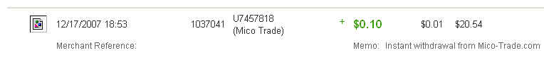 Цитирую перевод из гугла поэтому коряво. Сорри ! Цитата Мико Trade.com начинает свою деятельность поделиться всем опытом своих специалистов в области управления активами и новые прибыли инвестиций для всех его членов. Через поиск новых и инновационных продуктов мы в настоящее время специализируется на выявление прибыльных инвестиций в разных формирующиеся рынки Азии и Южной Америки с реальными высокие доходы и большой ликвидностью. Кроме того наша команда финансовых консультантов специализируется в агробизнес и всегда после перспективных проектов, нуждающихся в финансовой поддержке. Мы с группой опытных недвижимости и инвесторов форекс торговцев, которые дадут вам то, что вам необходимо для достижения Ваших целей в sortest время, как можно с небольшой первоначальных инвестиций. Свеженький проект. Возможны варианты удачного вложения пока дышит. Есть информация на moneymakergroup.com/Mico-trade-Mico-tradec-t177525.html и talkgold.com/forum/r199305-.html Статистика проекта Цитата Running days : 0 Total accounts : 95 Total deposited : $ 594.00 Total withdraw : $ 3.65 Visitors online : 29 Members online : 11 Планы и рефбонус: Цитата 115% - 135% After 1 Day (Instant Withdrawals) Plan Spent Amount ($) Profit (%) Plan 1 $1 - $250 115.00 Plan 2 $251 - $500 120.00 Plan 3 $501 - $1,000 125.00 Plan 4 $1,001 - $5,000 130.00 Plan 5 $5,001 - $10,000 135.00 140% after 2 Days (instant Withdrawals) Plan Spent Amount ($) Profit (%) Plan 1 $1 - $250 140.00 Plan 2 $251 - $500 145.00 Plan 3 $501 - $1,000 150.00 Plan 4 $1,001 - $5,000 155.00 Plan 5 $5,001 - $10,000 160.00 170% After 3 Days (instant Withdrawals) Plan Spent Amount ($) Profit (%) Plan 1 $1 - $250 170.00 Plan 2 $251 - $500 175.00 Plan 3 $501 - $1,000 180.00 Plan 4 $1,001 - $5,000 185.00 Plan 5 $5,000 - $10,000 190.00 5% ref commission [URL=http://whois.domaintools.com/mico-trade.com target="_blank"] Данные WHOIS[/URL] Цитата Contact: +01.213744164 Domain Name: MICO-TRADE.COM Registrant: MansterGroup MansterGroup () 1601 GRIFFITH AVENUE LOS ANGELES California,90021 US Tel. +01.213744164 Creation Date: 15-Dec-2007 Expiration Date: 15-Dec-2008 Domain servers in listed order: dns2.tgnetco.com dns1.tgnetco.com Мой вклад скрин здесь или здесь или здесь |